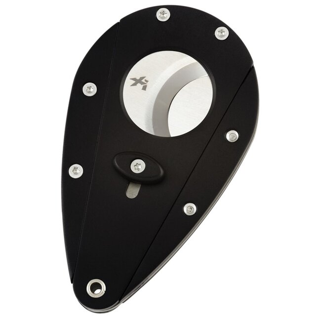 Green aluminium cigar cutter with blades. All Xi cutters are the same ring gauge: they will cut a 54 ring gauge cigar in half. Depending on how much cap you cut, they will cut up to a 58 ring gauge cigar.