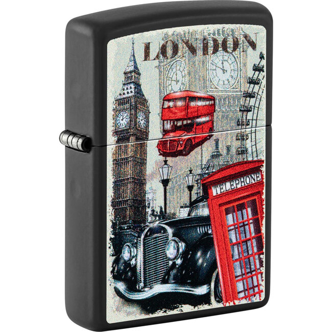 Metal lighter in a black matte finish with a print. This flint lighter has to be filled with lighter fluid before using. The brand Zippo is famous about their quality and lifetime garantee.