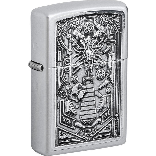 Metal lighter in a satin finish with a 3D emblem. This flint lighter has to be filled with lighter fluid before using. The brand Zippo is famous about their quality and lifetime garantee.