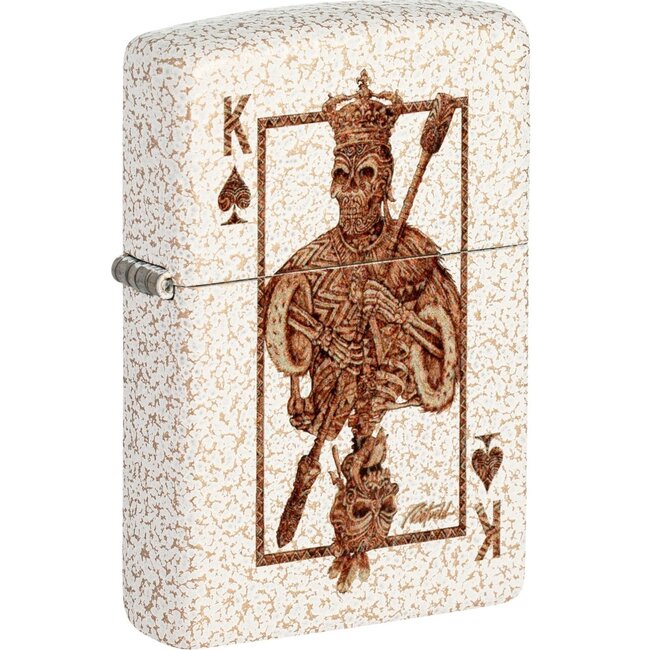 Metal lighter in a white/yellow finish (Mercury Glass) printed. This flint lighter has to be filled with lighter fluid before using. The brand Zippo is famous about their quality and lifetime garantee.