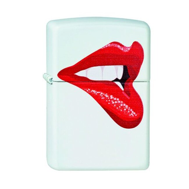 Metal lighter in a white matte finish with a print. This flint lighter has to be filled with lighter fluid before using. The brand Zippo is famous about their quality and lifetime garantee.