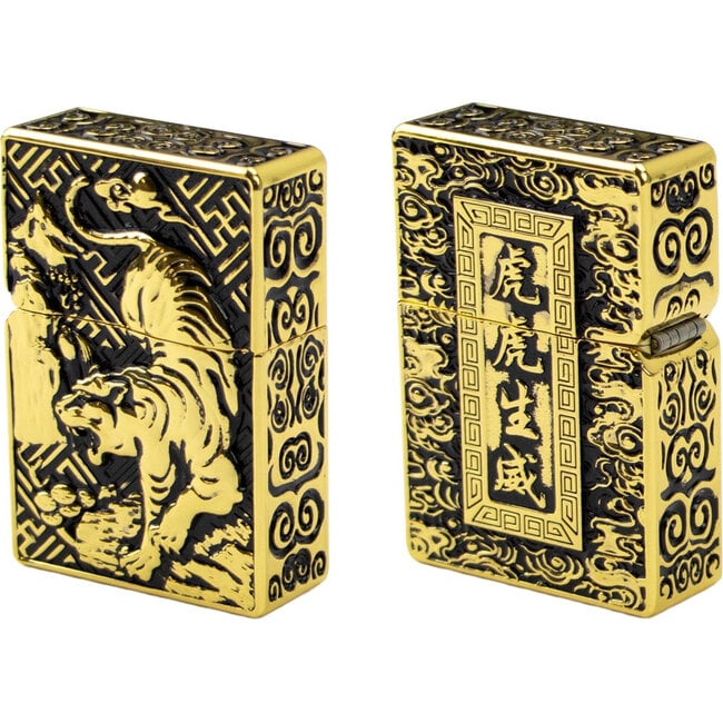 Zwaar metalen aansteker van Chinese makelij, ondanks het feit dat de verpakking anders doet vermoeden. Het vervangbare en navulbare binnenwerk heeft een dubbele jet-flame en werkt op gas. Een binnenwerk van een Zippo aansteker zou hier ook in passen. Een prachtige en opvallende aansteker. De aansteker wordt geleverd in een geschenkdoos.