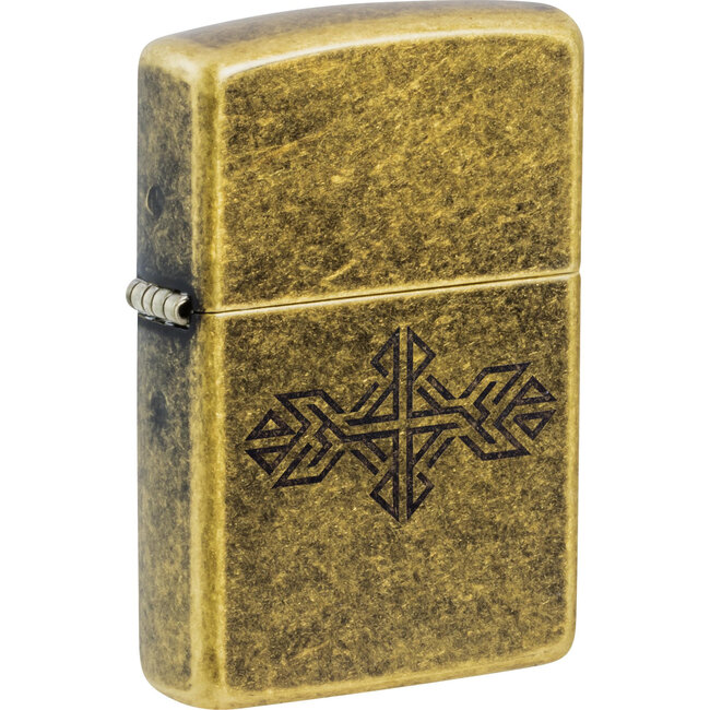 Metalen aansteker in een "antique brass" afgewerkte uitvoering gegraveerd. Dit is een vuursteen aansteker die gevuld dient te worden met aanstekerbenzine. Het merk Zippo heeft een zeer goede reputatie opgebouwd door de jaren heen door hun levenslange garantie en hun uitstekende kwaliteit.