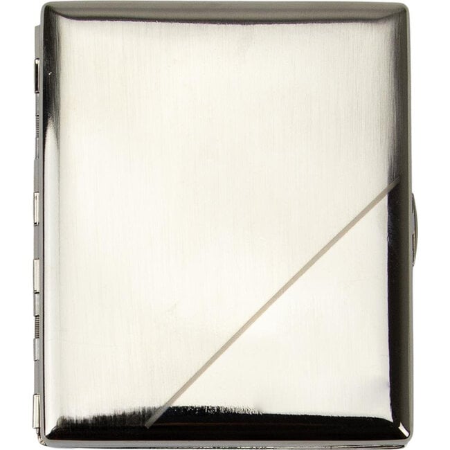 Metalen sigarettenkoker voor circa 20 sigaretten. De sigarettenetui is voorzien van een klem om de sigaretten bij elkaar te houden. De gravering is zeer stijlvol. Deze koker is ideaal om uw zelfgemaakte sigaretten in te doen. Door zijn compactheid neemt deze niet veel ruimte in als u deze meeneemt in een tas of broekzak.